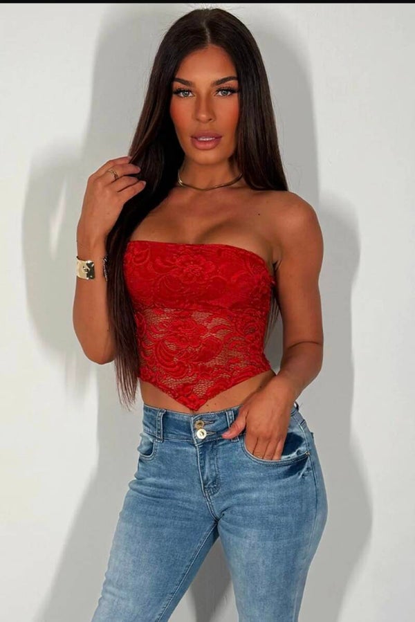 Laced bandeau stretchy crop top